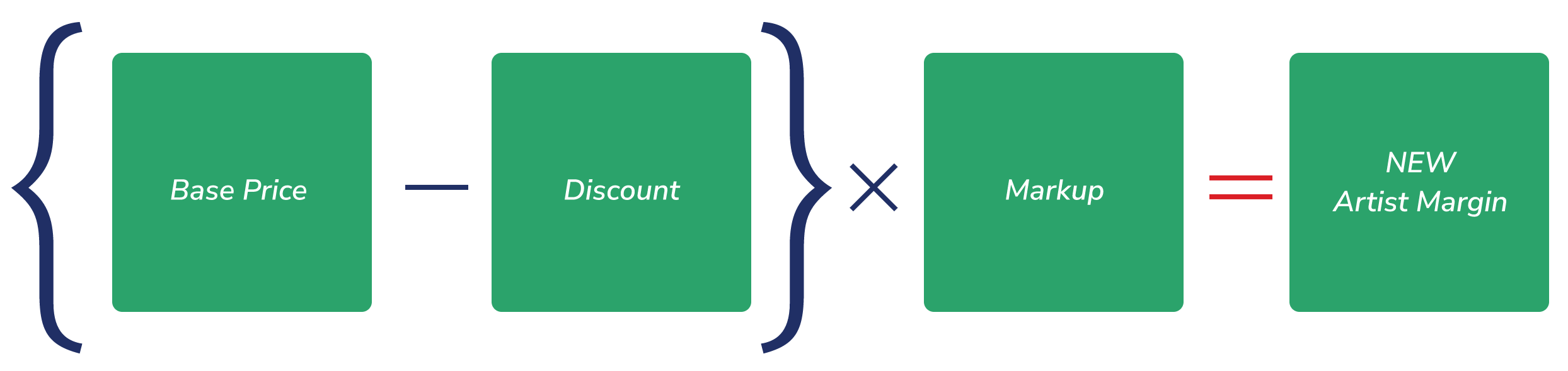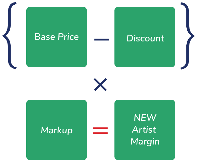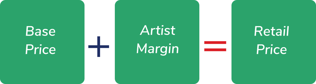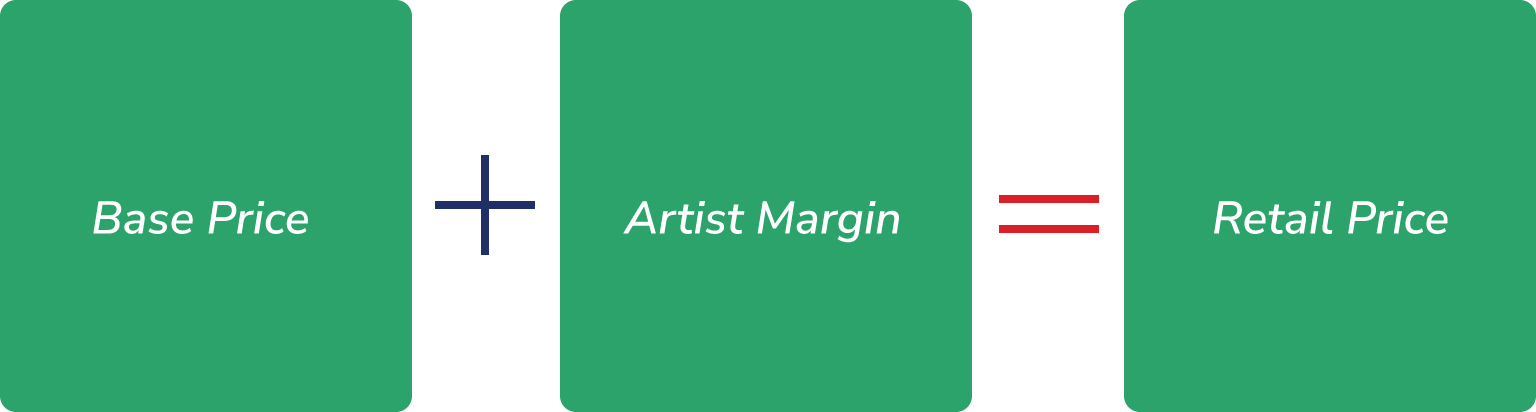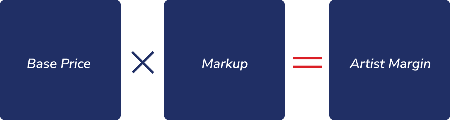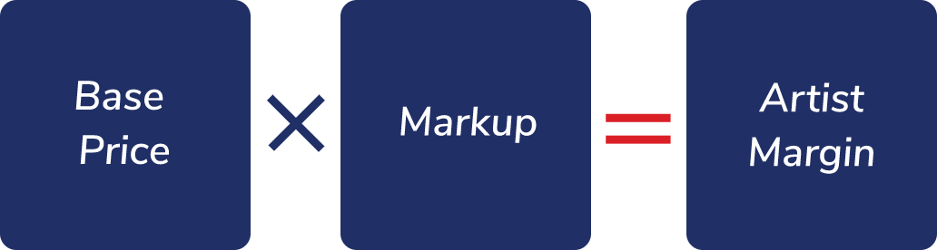 Remember, your markup is a percentage of the base price, meaning if the base price changes, your artist margin changes. The visual equation looks something like this: